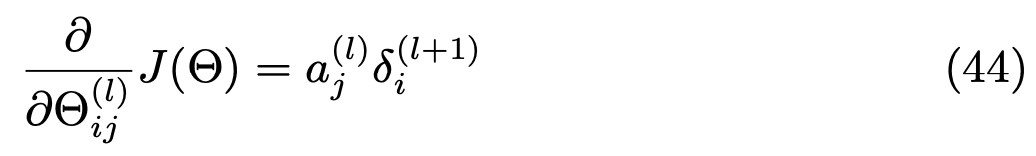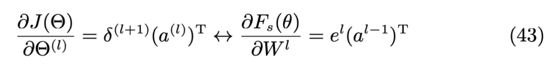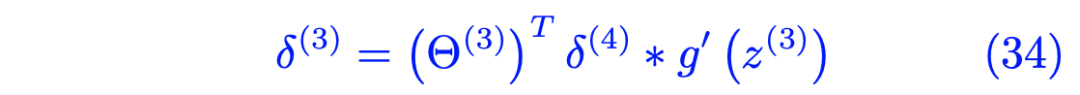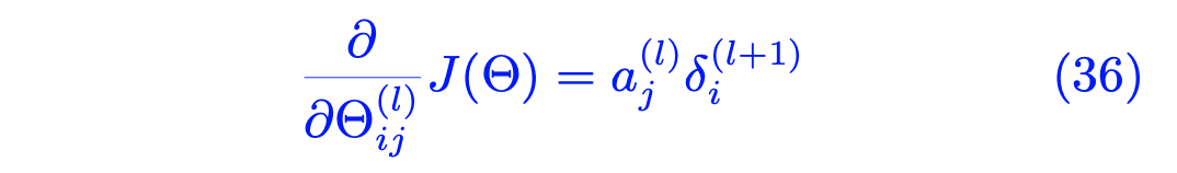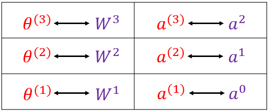 本节主要是对吴恩达机器学习讲义中(ML-AndrewNg-Notes: Coursera)关于 BP 原理结论部分的验证,所以本文的主要目的是验证吴中的关于 BP 结论与本文的 section 4 之间的结论是否一致。由于符号和表示形式的差异,将吴中关于 BP 原理部分的描述用蓝色字体表示(该部分在),将验证过程用红色字体表示。