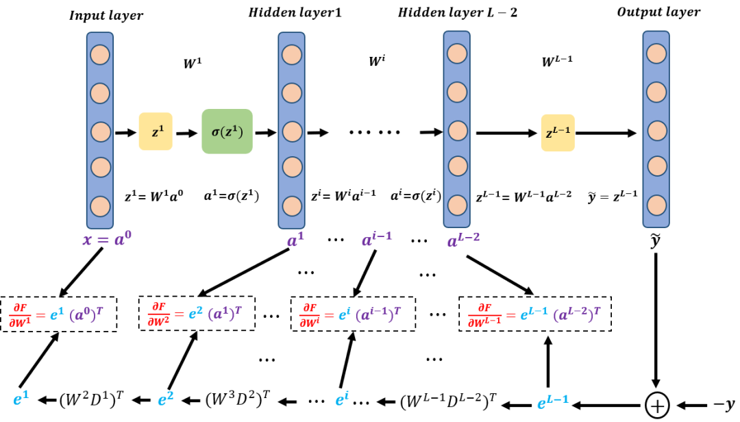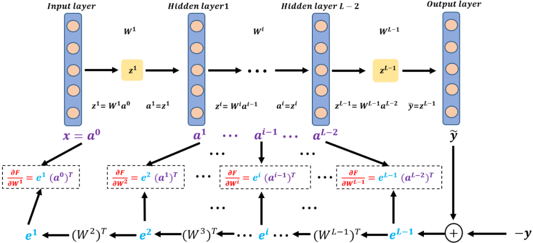 根据公式(32)将 L 层含激活函数的 BP 原理可以形象地表示为图8所示:▲ 图8:L层含激活函数的BP原理图