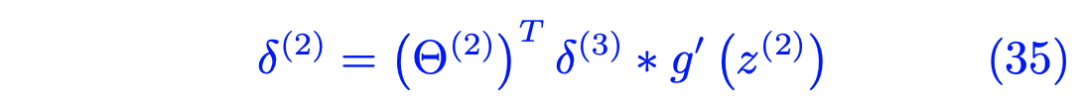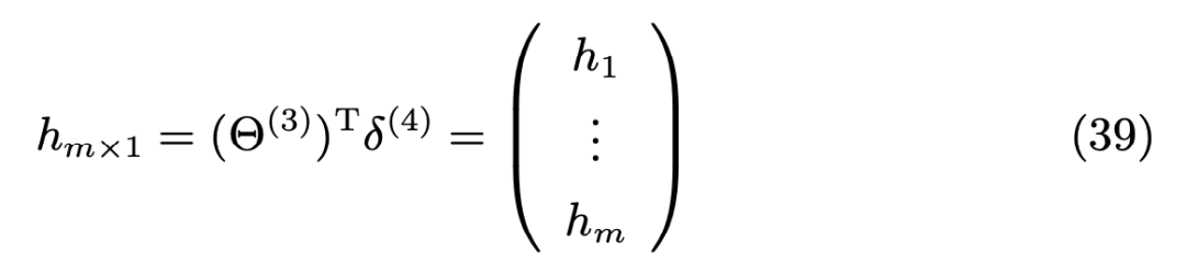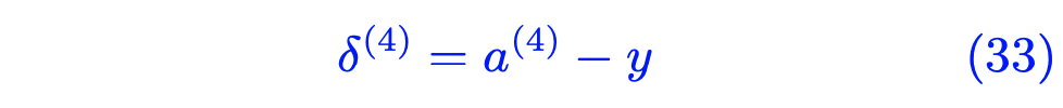 从最后一层的误差开始计算,误差是激活单元的预测 与实际值 之间的误差。用 来表示误差,则: