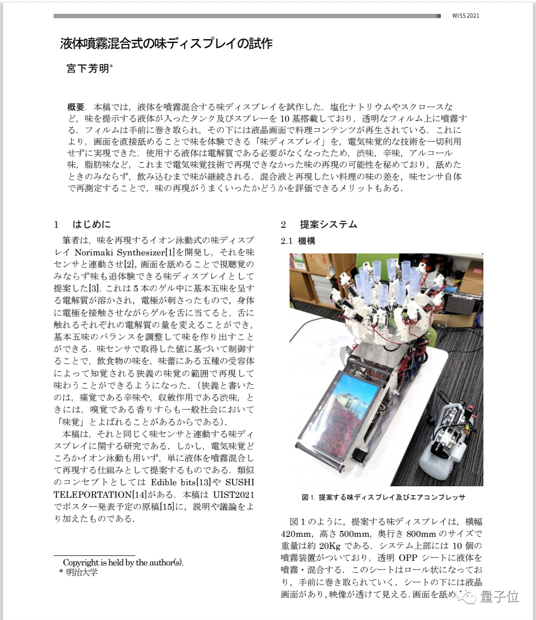 这个电视机的发明者,日本明治大学Homei Miyashita教授(谷歌学术显示其研究方向为人机交互和Entertainment Computing)表示,这项研究的目标就是实现人们足不出户就可以品尝世界另一端的美味。