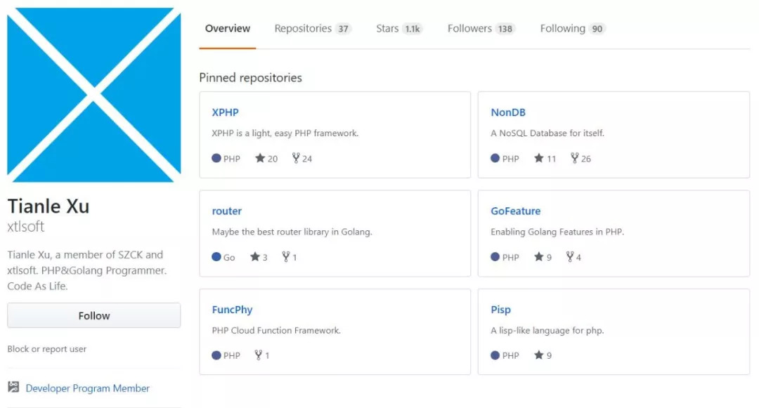 前不久在V2EX上看到一个帖子,主题是「一堆初中生写的类库、框架」,原本猿妹以为只是个标题党不以为意。点进去该博主的博客主页发现,博主确实是一名初中生,而且他的GitHub主页,确实已经创建了多个项目,如下图: