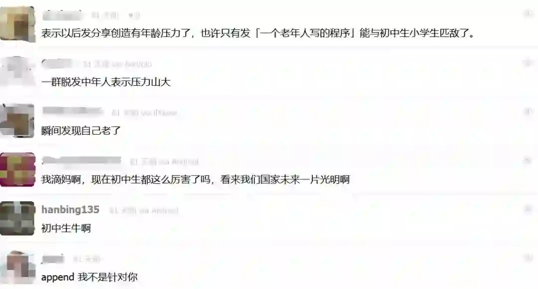 看完这些项目,网友么就开始纷纷议论:有感慨中年人表示压力山大;瞬间发现自己老了;也有质疑是码农父母搞得,你怎么看呢?