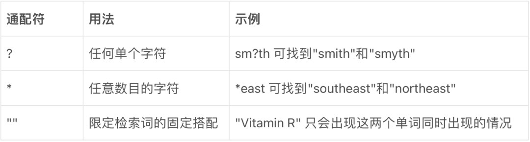 在输入搜索信息时,Publish or Perish 支持基本的布尔运算符和通配符。前者包括了 AND、OR、NOT(或、与、非)这三个词组,用来表示多个词语之间是如何关联的,具体规则如下图所示:
