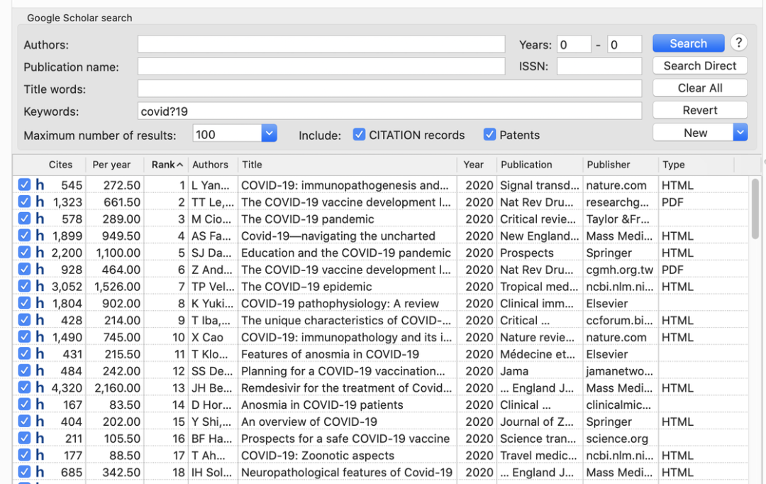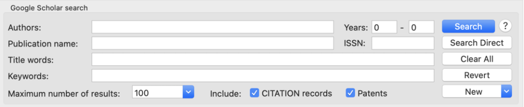 不过,现在 Publish or Perish 只支持手动输入规则,而不能像 PubMed 的高级搜索,用户输入各种规则后自动组合匹配,也无法为搜索结果添加 RSS 或提醒。