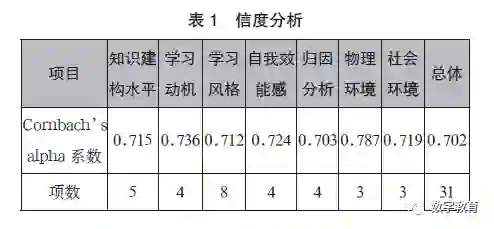按照假设知识建构所涉及的要素,编制了学习者知识建构的影响因素调查问卷。问卷共包括两个部分,第一部分为个人基本信息,第二部分为知识建构的影响因素调查。第二部分包括学习者知识建构水平调查、影响学习者知识建构的学习者特征因素调查、影响学习者知识建构环境因素调查。问卷采取了李克特式5 点量表的形式,被访者对所答问题的赞同程度从1—5 分为5 个等级,分别表示为:完全不同意、比较不同意、一般同意、比较同意、完全同意。