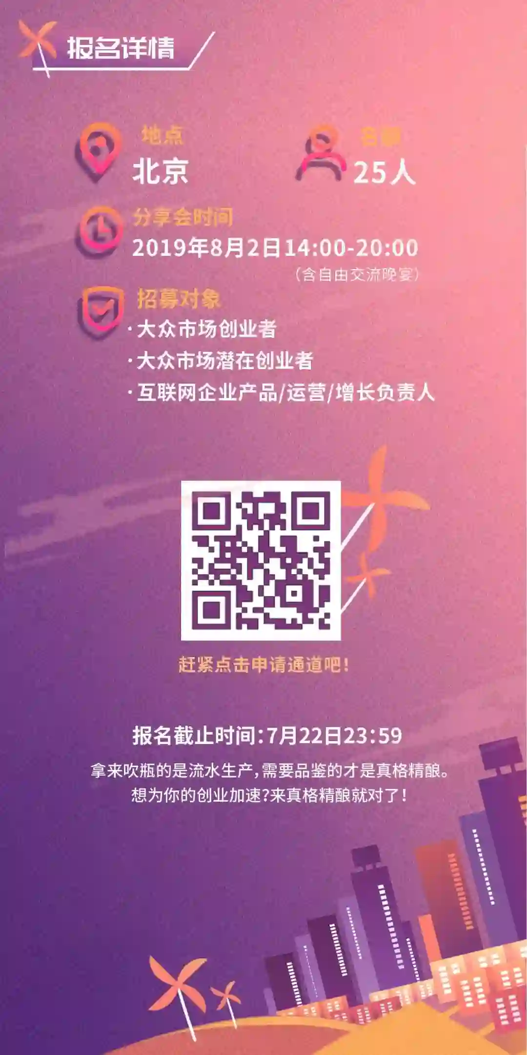 我们希望通过这场闭门分享会,扫清你对大众市场的认知误区,解决你在创业路上的困惑,通过交流和讨论碰撞出新的思维火花。
