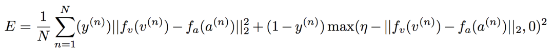 优化 AVTS 模型中,论文作者一开始直接采用交叉熵损失进行优化,发现从头开始学习时很难在这种损失下实现模态间的融合,通过最小化对比度损失可以获得更一致和稳健的优化,在正对上产生小距离,在负对上产生更大距离: