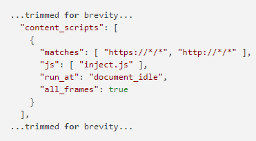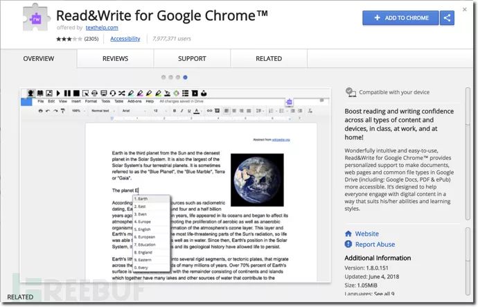 Chrome的Read&Write插件利用名为“inject.js”的Google浏览器内置脚本(Content Script)来向诸如Google Docs在内的各种在线文档页面插入一个自定义工具栏,以方便读者用户可以利用该插件进行文档读写。默认情况下,此脚本将会向所有HTTP和HTTPS源执行插入,插件的使用说明中已定义了这一点: