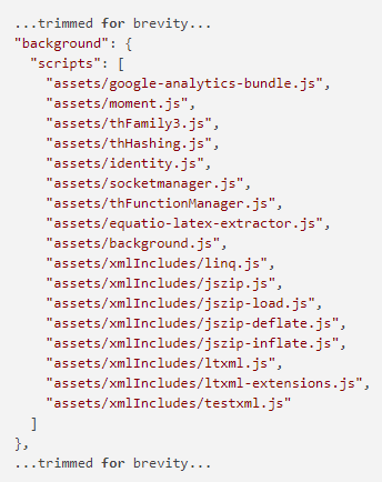 虽然存在以上这么多后台页面进行消息侦听和函数调用,我们选取其中一个可漏洞利用的即可,我们就来看看页面 “background.js”吧:
