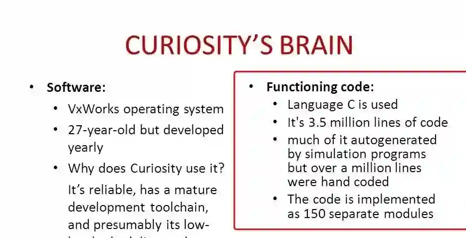 刚刚登上火星盖尔陨石坑的好奇号探测车,上面至少有350万行代码是用C语言写的。