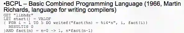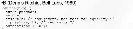 汤普森最终证明,在 PDP-7上使用的语言,是「具有大量 SMALGOL 语法的 BCPL 语义」 ,意思是它看起来像 SMALGOL,但工作起来也像 BCPL。而且,
