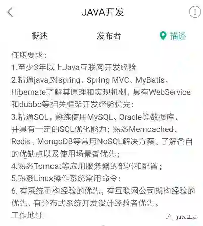 所以,要转行的话,先考虑你想去什么公司,然后在各大招聘网站上面看看这个公司对java开发人员的要求是怎样的。他们公司需要开发人员会springmvc,那就去学,需要会mysql和oracle,那也要去看看。以下是我在网上选的一个应聘需求,可以参考一下: