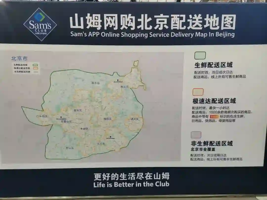 ▲ 山姆网购北京配送地图。徐晴 / 摄