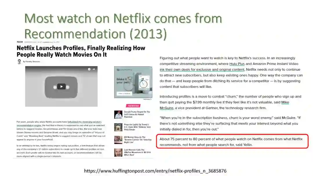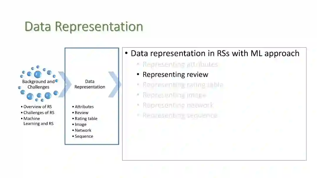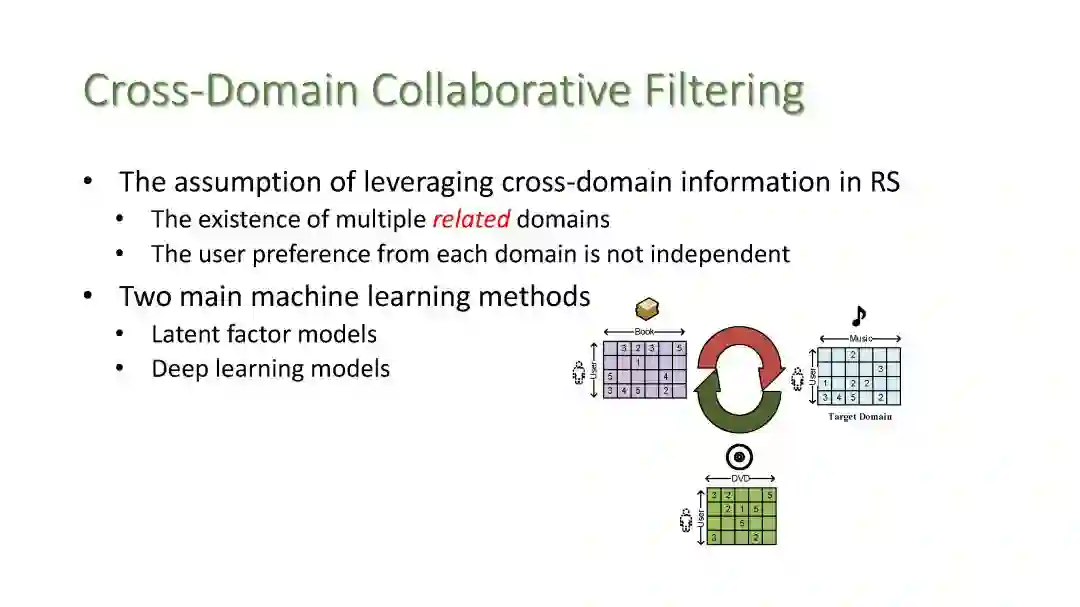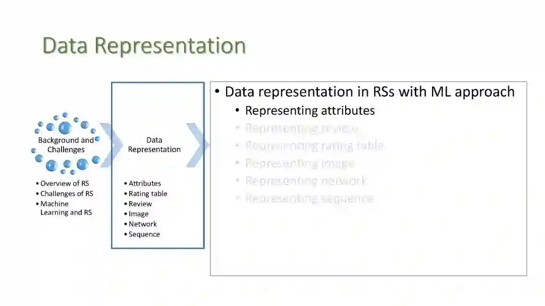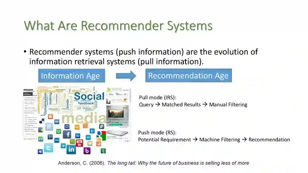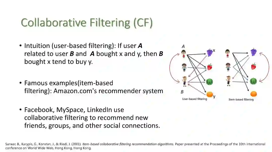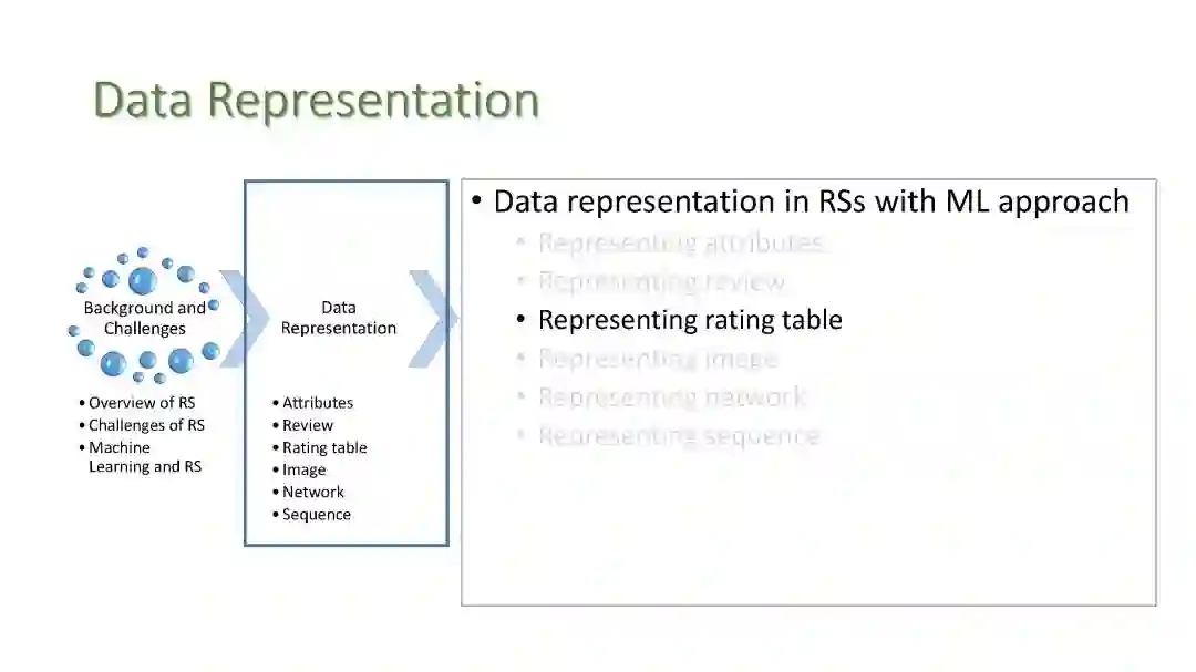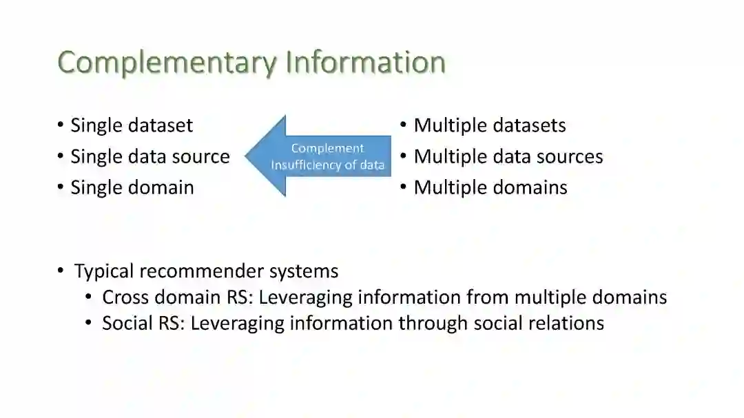 值得一提的是,推荐系统(RS),可能是最广泛使用的AI系统之一,它已经融入到我们日常生活的各个部分。 在AI时代,最前沿的机器学习方法,如深度学习,已经成为构建推荐系统的首选。 目前的机器学习方法是建立在数据的基础之上的,因此推荐任务可以看作这样一类问题:从数据中学习和推断。