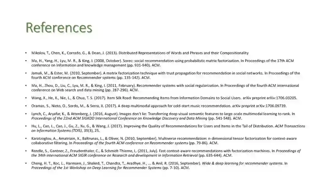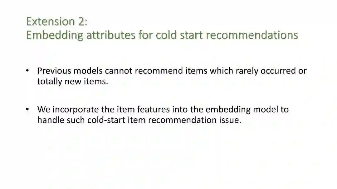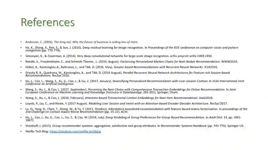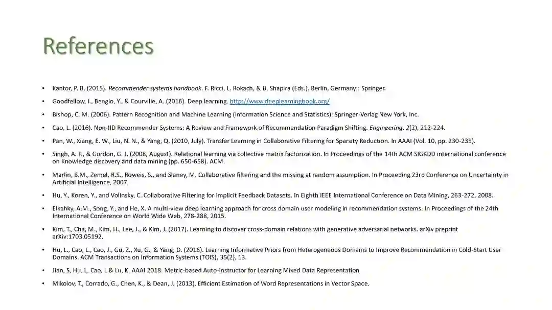 Wang, S., Hu, L., & Cao, L. (2017, September). Perceiving the Next Choice with Comprehensive Transaction Embeddings for Online Recommendation. In Joint European Conference on Machine Learning and Knowledge Discovery in Databases(pp. 285-302). Springer, Cham.