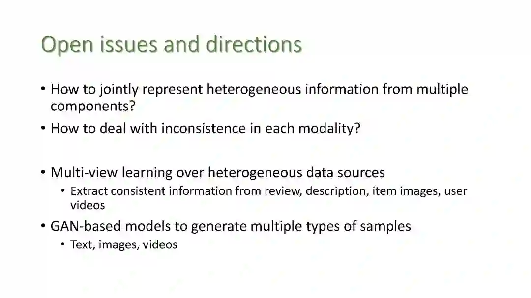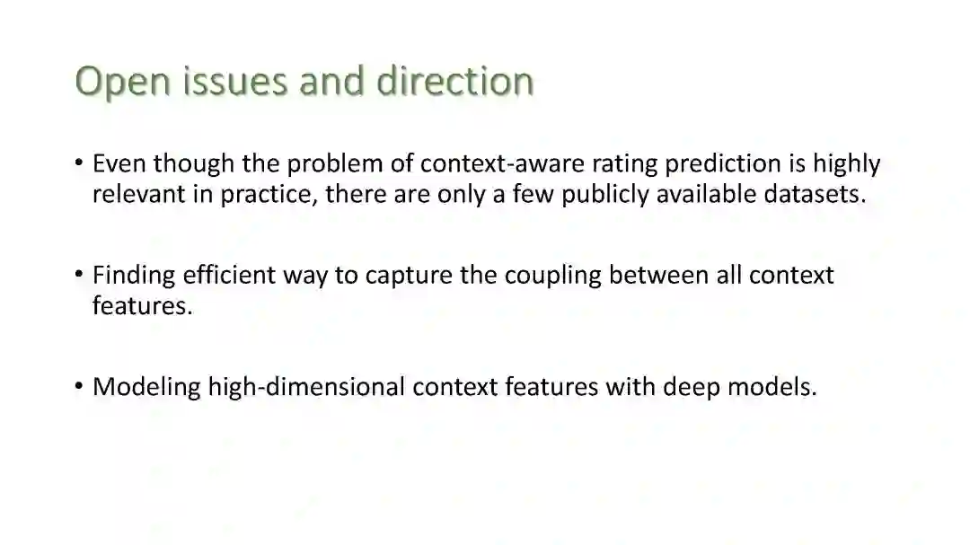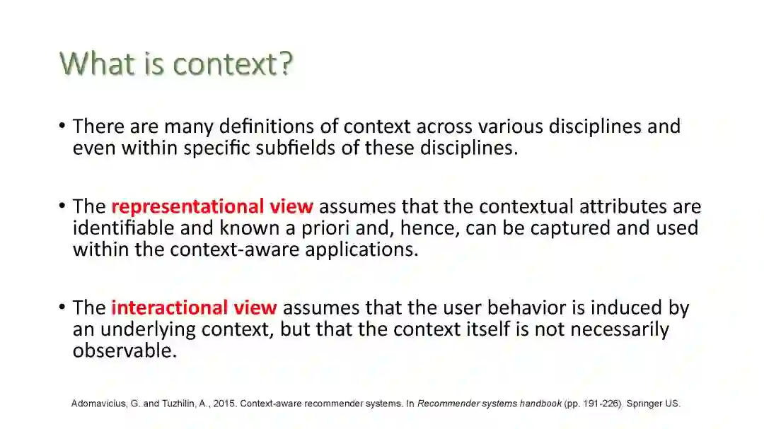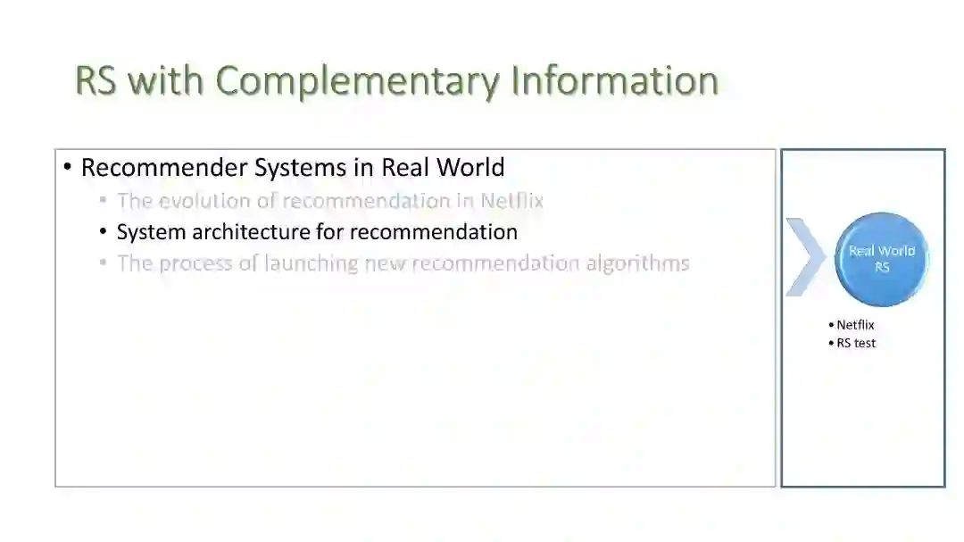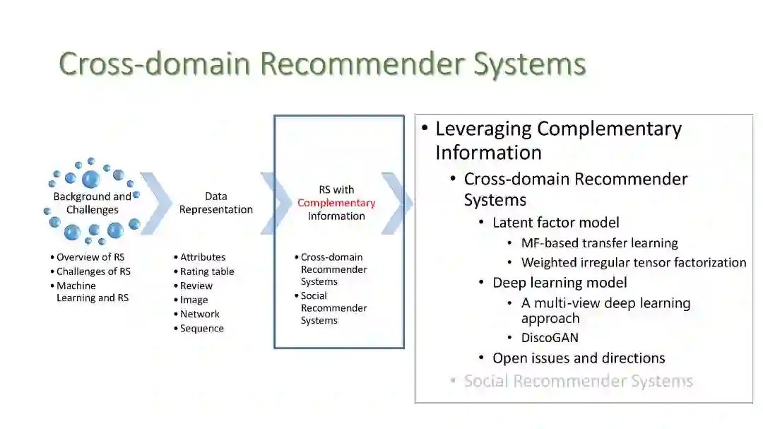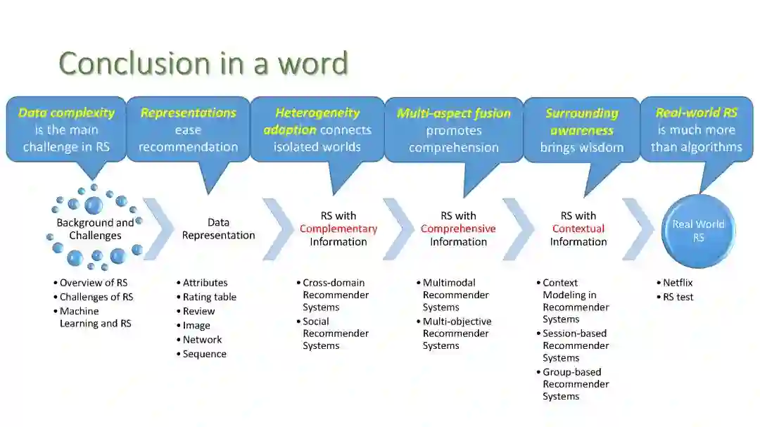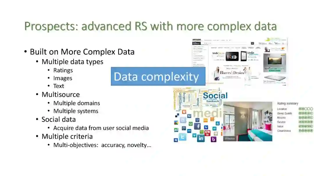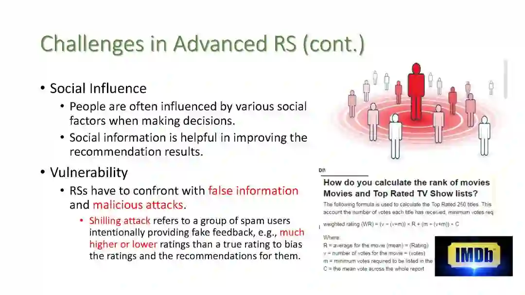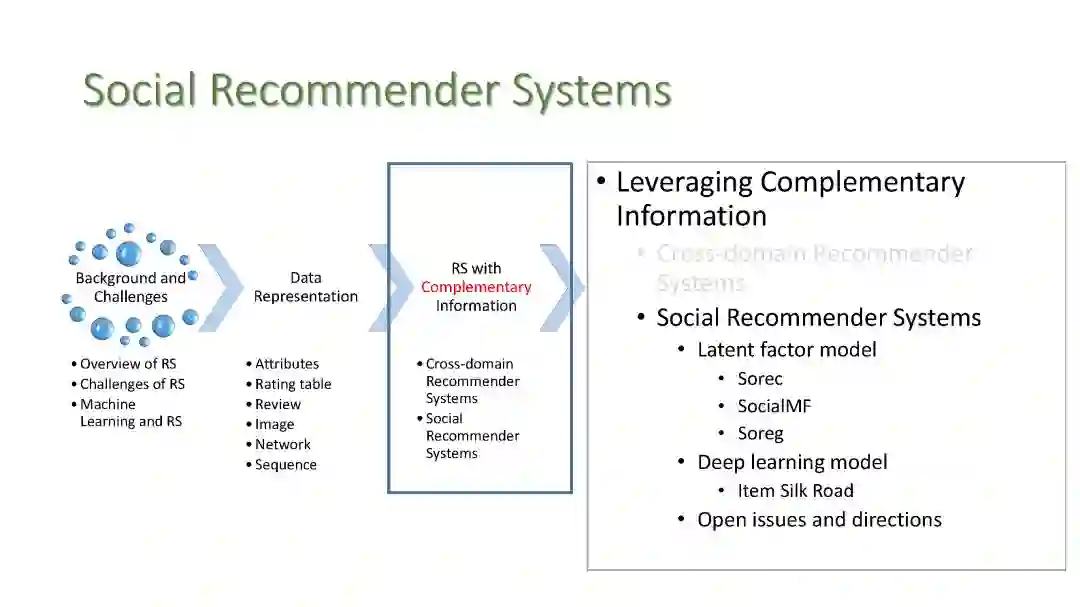 传统RS是基于相关数据,如评论,内容和/或社会关系,是独立同分布(IID)。 直观地说,这与现实生活中的数据特征不一致,不能代表相关数据的异质性和耦合关系。 因此,我们采用前沿机器学习的方法,通过耦合相关的异构数据来提高互补性,全面性和上下文(3C)信息的RS。 本教程将分析前沿推荐问题中的数据、挑战和业务需求,并采用非IID视角介绍机器学习方面的最新进展,建模基于上下文(3C)的下一代推荐系统(RS)。 包括RS发展综述和非IID推荐系统,跨域RS,社交RS,多模式RS,多标准RS,情境感知RS和基于分组的RS的高级机器学习,以及将它们组合构成真实的推荐系统。