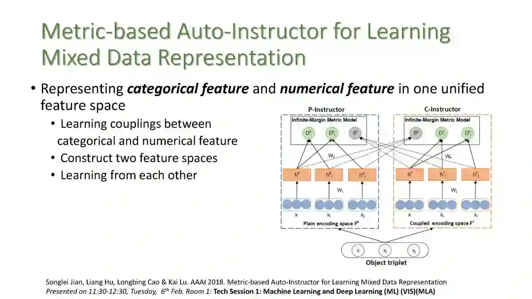Jian, S, Hu, L, Cao, L & Lu, K. AAAI 2018. Metric-based Auto-Instructor for Learning Mixed Data Representation