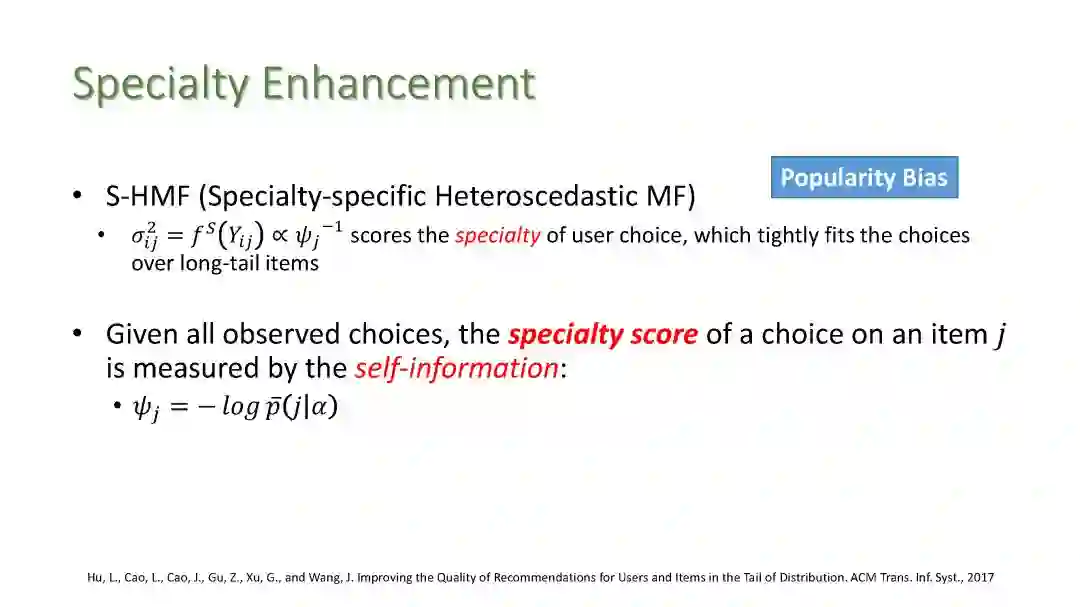 Hu, L., Cao, L., Cao, J., Gu, Z., Xu, G., & Wang, J. (2017). Improving the Quality of Recommendations for Users and Items in the Tail of Distribution. ACM Transactions on Information Systems (TOIS), 35(3), 25.