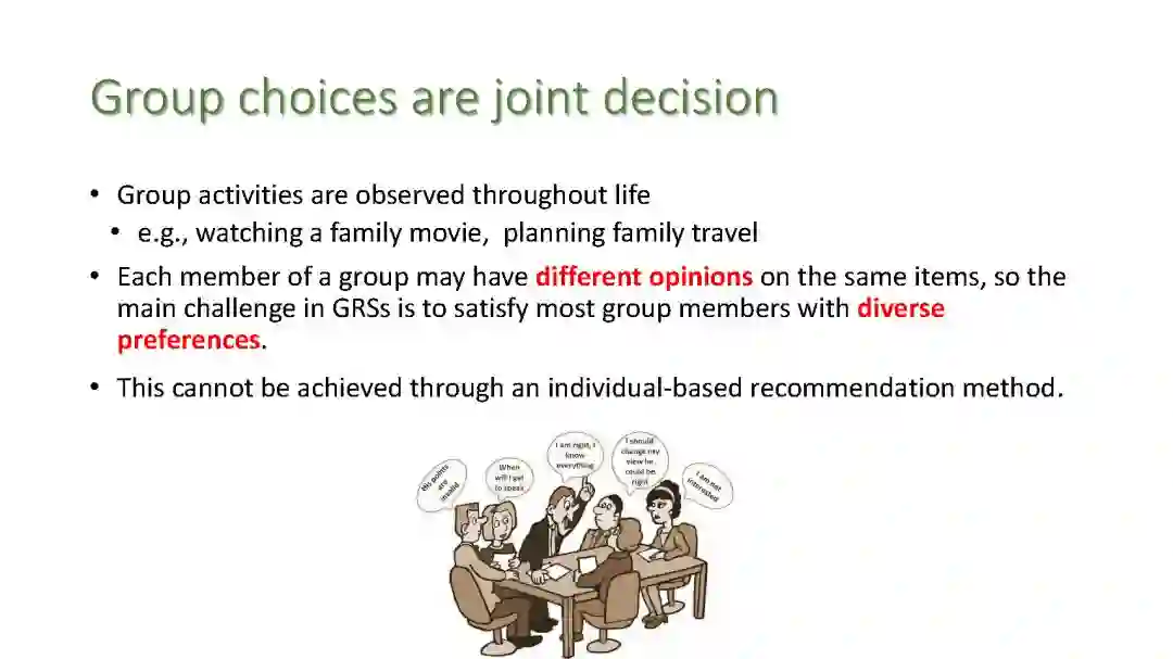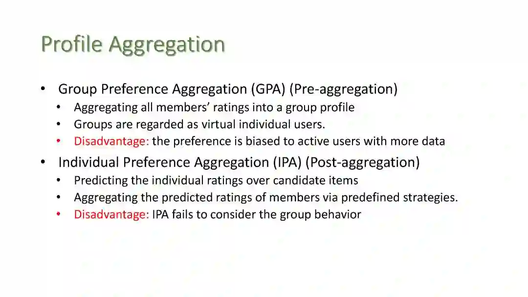 Masthoff, J. (2015). Group recommender systems: aggregation, satisfaction and group attributes. In Recommender Systems Handbook (pp. 743-776). Springer US.