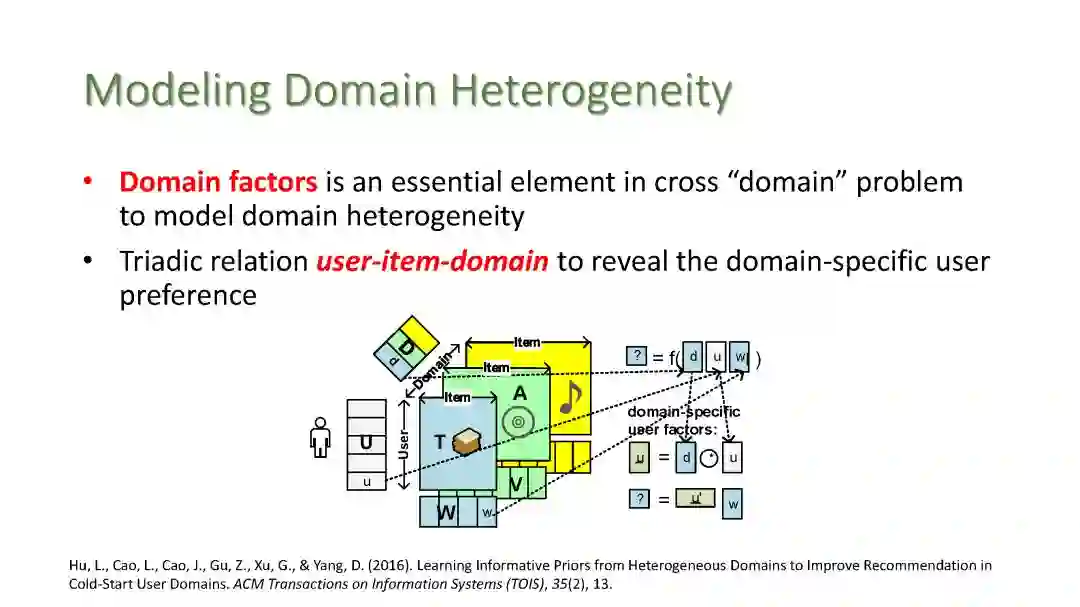 Hu, L., Cao, L., Cao, J., Gu, Z., Xu, G., & Yang, D. (2016). Learning Informative Priors from Heterogeneous Domains to Improve Recommendation in Cold-Start User Domains. ACM Transactions on Information Systems (TOIS), 35(2), 13.
