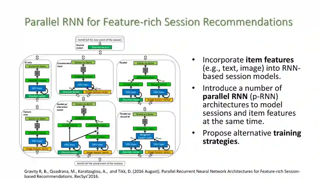 Gravity R, B., Quadrana, M., Karatzoglou, A., and Tikk, D. (2016 August). Parallel Recurrent Neural Network Architectures for Feature-rich Session-based Recommendations. RecSys’2016.