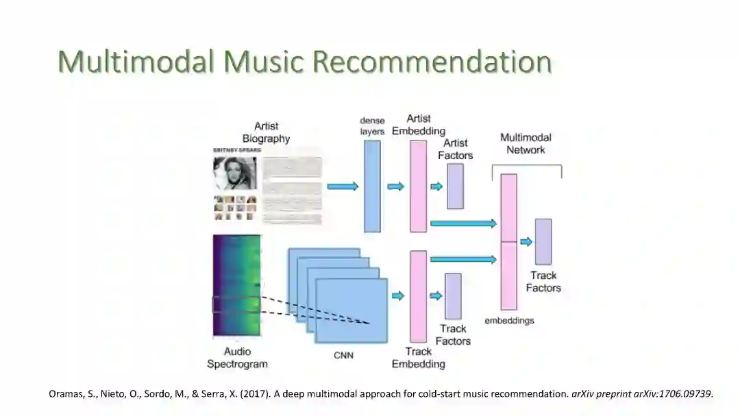 Oramas, S., Nieto, O., Sordo, M., & Serra, X. (2017). A deep multimodal approach for cold-start music recommendation. arXiv preprint arXiv:1706.09739.
