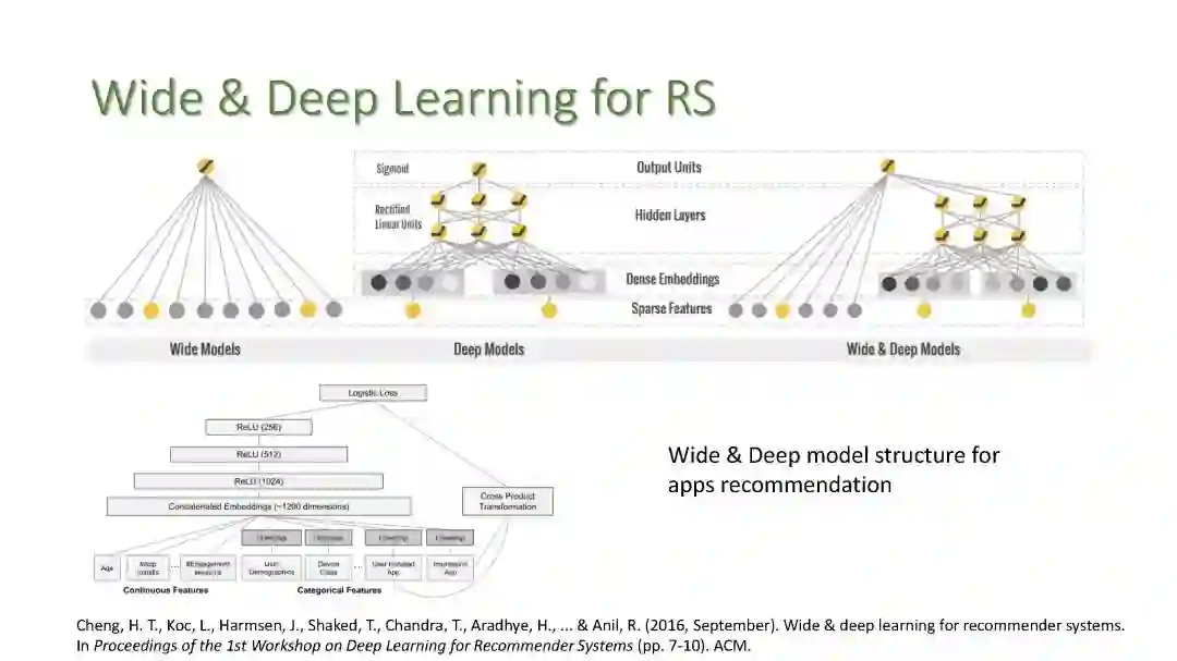 Cheng, H. T., Koc, L., Harmsen, J., Shaked, T., Chandra, T., Aradhye, H., ... & Anil, R. (2016, September). Wide & deep learning for recommender systems. In Proceedings of the 1st Workshop on Deep Learning for Recommender Systems (pp. 7-10). ACM.