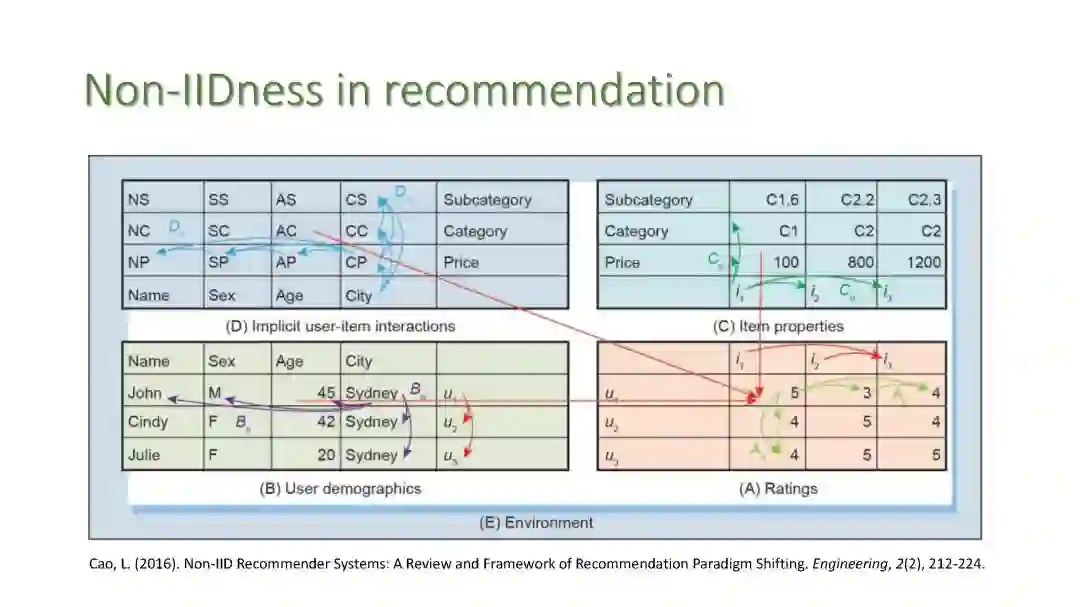 Cao, L. (2016). Non-IID Recommender Systems: A Review and Framework of Recommendation Paradigm Shifting. Engineering, 2(2), 212-224.