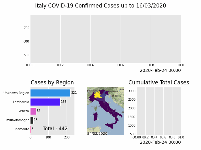 pandas_alive.animate_multiple_plots( 'examples/italy-covid.gif', plots, figs, enable_progress_bar=True )