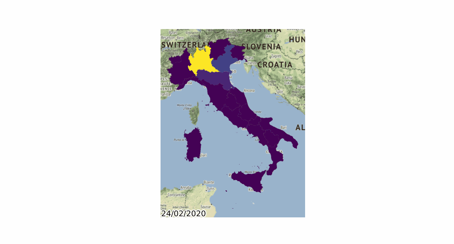 import geopandasimport pandas_aliveimport contextilygdf = geopandas.read_file('data/italy-covid-region.gpkg')gdf.index = gdf.regiongdf = gdf.drop('region',axis=1)result = gdf.iloc[:, :20]result['geometry'] = gdf.iloc[:, -1:]['geometry']map_chart = result.plot_animated(filename='examples/example-geo-polygon-chart.gif',basemap_format={'source': contextily.providers.Stamen.Terrain})