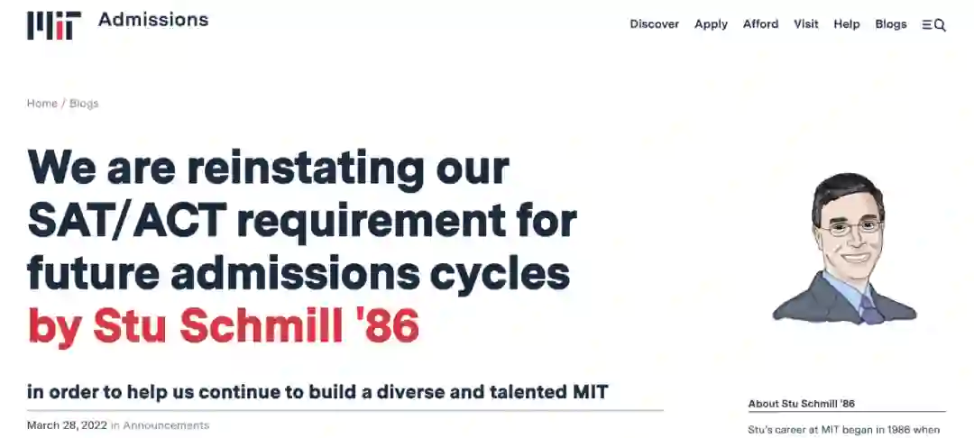 参考链接:https://mitadmissions.org/blogs/entry/we-are-reinstating-our-sat-act-requirement-for-future-admissions-cycles/