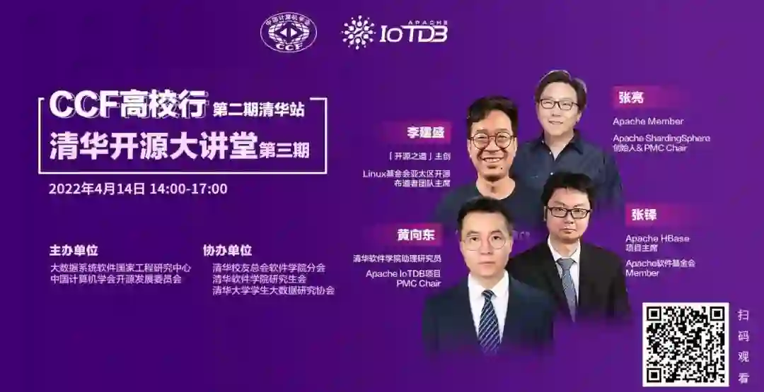 由大数据系统软件国家工程研究中心、中国计算机学会开源发展委员会主办的CCF高校行清华开源大讲堂第三期正在直播,扫码观看↓↓