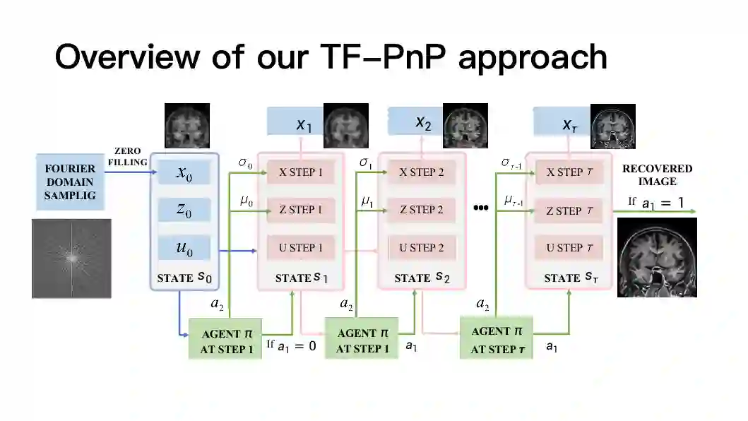 出了一种免调参的 PnP 近端算法,支持自动设置内部参数,包括惩罚参数、去噪强度以及终止时间。开发了一个用于自动搜索参数的策略网络,它