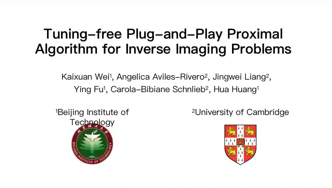 几天前,ICML 2020杰出论文奖和杰出论文荣誉提名奖公布,北理工研二学生魏恺轩作为一作的论文获得了杰出论文奖。论文名为Tuning-free Plug-and-Play Proximal Algorithm for Inverse Imaging Problems。