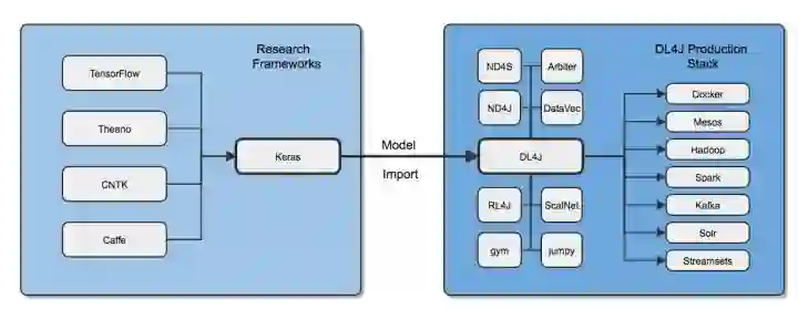 许多较新的模型由Tensorflow、Keras、Caffe等框架编写,Deeplearning4j提供了一种使用这些模型的机制。Tensorflow、Caffe等框架的模型都可以被转换为Keras模型,Deeplearning4j内置了Keras模型导入的支持,因此Deeplearning4j可以支持大部分流行深度学习框架模型的导入。