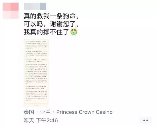 5月3日,小巴在朋友圈看到这条信息,附着一张长图,定位:泰国亚兰,Princess Crown Casino(公主皇冠赌场)。