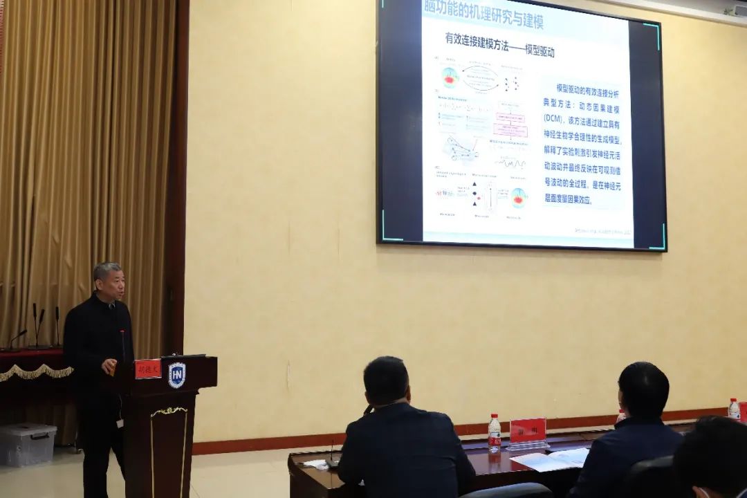 会上,国防科技大学智能科学学院胡德文教授首先做了题目为“功能成像脑网络分析”的报告。报告指出,目前脑科学研究集中在宏观、微观和介观层面上,对两个脑区之间的结构、功能等进行有效连接。未来,因果分析或将是下一个具有潜力的数据驱动方向。目前面临的挑战主要有个体差异、任务差异和中心差异。最后胡教授向我们介绍了他研究的具体方向,如基于大脑影像的模式识别;基于图卷积网络的多中心脑影像迁移学习等。