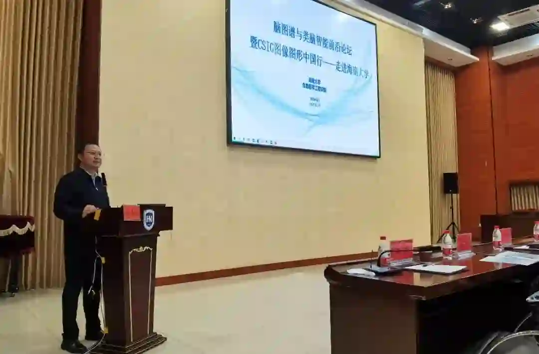 2021年12月27日,“CSIG图像图形中国行”来到海口,在海南大学思源学堂多功能厅举办。本次活动由中国图象图形学学会主办,CSIG脑图谱专委会和海南大学生物医学工程学院联合承办,旨在对“脑图谱与类脑智能”领域的最新研究进行交流。海南大学生物医学工程学院刘谦院长和卓俊杰副教授主持会议,中国科学院院士、海南大学校长骆清铭致辞。国防科技大学胡德文教授、北京大学彭宇新教授、中国科学院自化研究所蒋田仔研究员、北京大学林宙辰教授、海南大学殷明教授、北京邮电大学刘勇教授等受邀在会上作报告,吸引来自各高校100余名师生参加。