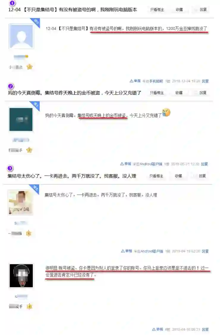 另外有用户在贴吧里反馈自己的账户无故被盗,虚拟金币被偷走,再次印证了这个圈子里面的乱象丛生。