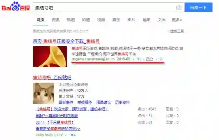 除了直接在搜索引擎中输入“集结号”外,测试过程发现搜索“集结号吧”却可以稳定在第一条搜索记录里看到上述木马钓鱼网址。