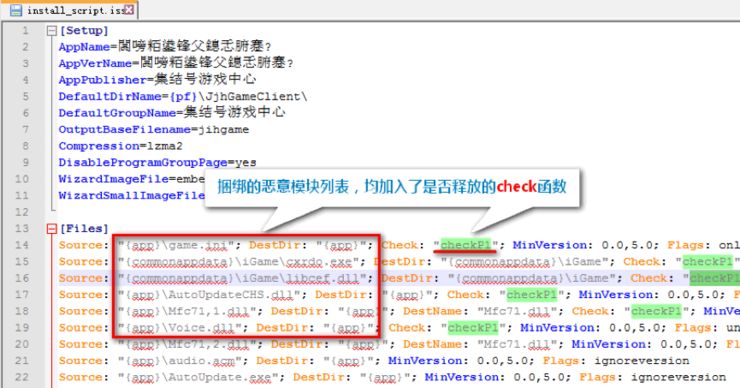 捆绑的恶意模块如下,这些模块是否安装释放要根据指定的“checkP1”函数进行判断: