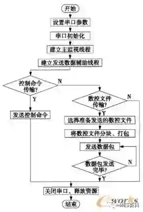 由于控制命令传输的信息数据较短,可以一次性的将控制命令传送给系统的服务器端,因此控制命令的传输相对简单。只需把控制命令信息转换成二进制数据后,在其前后加上特定的标识信息,然后发送给服务器端。服务器端辨识到首尾标识后按照约定提取二进制数据信息,再转换为控制命令控制数控设备。