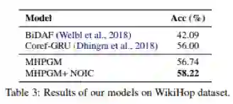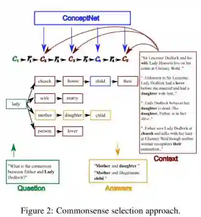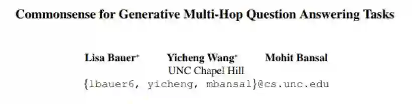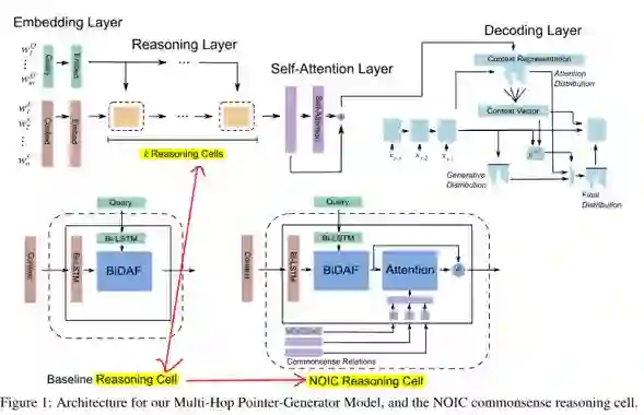 多跳问题一般需要模型可以推理、聚合、同步上下文中不同的信息。就需要理解那些人类通过背景知识可以理解的限制关系。本文提出了一个很强的baseline模型(multi-attention + pointer-generator decoder);引入了一个评分函数评价从ConceptNet知识库中抽取多跳知识(pointwise mutual information + term-frequency );并有效的利用提取的常识信息填补上下文的推理中( selectivelygated attentionmechanism)。