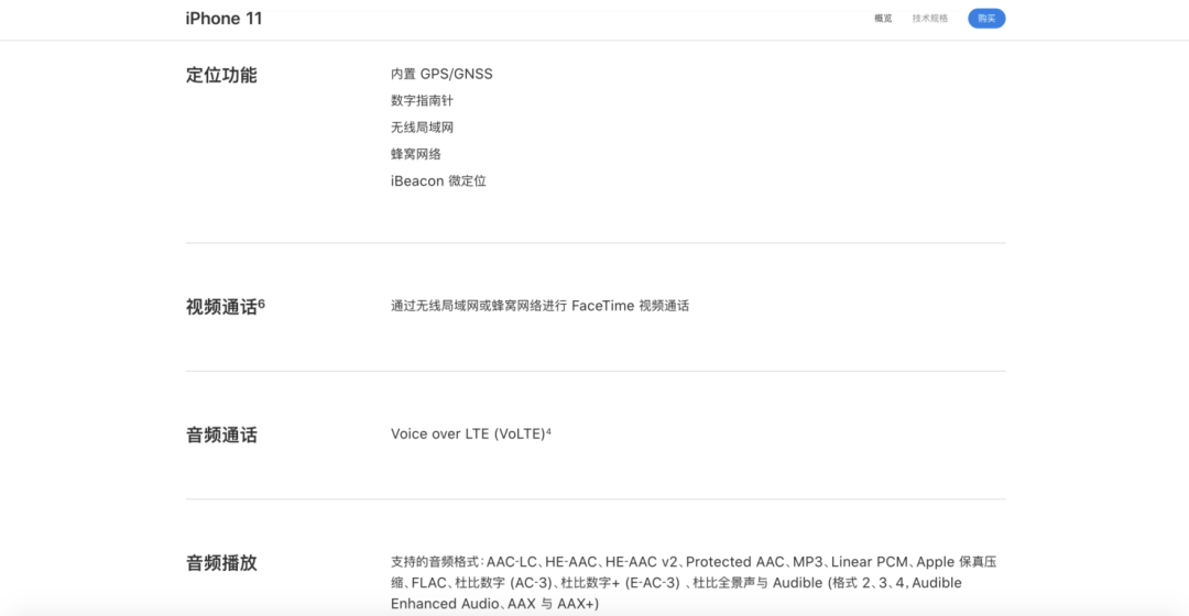 网站列出了对 GPS 和 GNSS 的内置支持。但其实 GNSS 的覆盖范围包括 GPS,GLONASS 和北斗。另外,虽然苹果表示 iPhone 11 已经支持北斗,但更早发布的机型似乎在硬件上还不支持这一系统,至少在其官网上没有对此进行标注。
