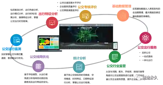 通过对地面公交卫星定位数据、一卡通刷卡数据、运营调度数据、轨道交通 AFC 刷卡数据等公共交通动态运营数据的全接入,建立城市公共交通运行监测体系,实现重点公交通道动态运行监测全覆盖,为提升公共交通行业精细化管理水平与服务管理效率提供支撑。