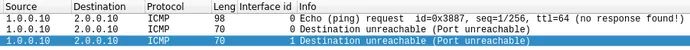 Wireshark捕获显示第二个ICMP消息从一个接口转到另一个接口。因此,无论过滤规则如何,攻击者都能够将数据包发送到正常过滤的主机H。