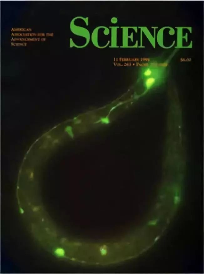 Chalfie的团队迅速地用GFP标记了线虫的对接触敏感的蛋白,观察到它在线虫体内神经细胞的表达。这一成果1994年发表在《科学》杂志上。Prasher由于提供了基因,被列为论文的最后作者。那期《科学》的封面就是一张在黑色的背景中发绿色荧光的线虫的照片。