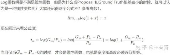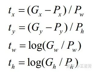 看最后两行公式,tw为何要指数呀,这就好理解了嘛,因为tw,th是log尺度缩放到对数空间了,当然要指数回来,而且这样可以保证大于0。至于左边乘以Pw或者Ph是因为tw=log(Gw/Pw)当然应该乘回来得到真正的宽高。