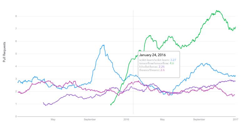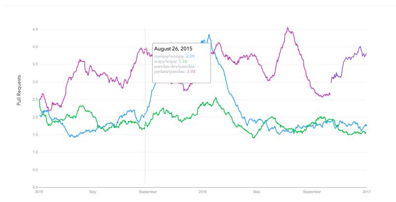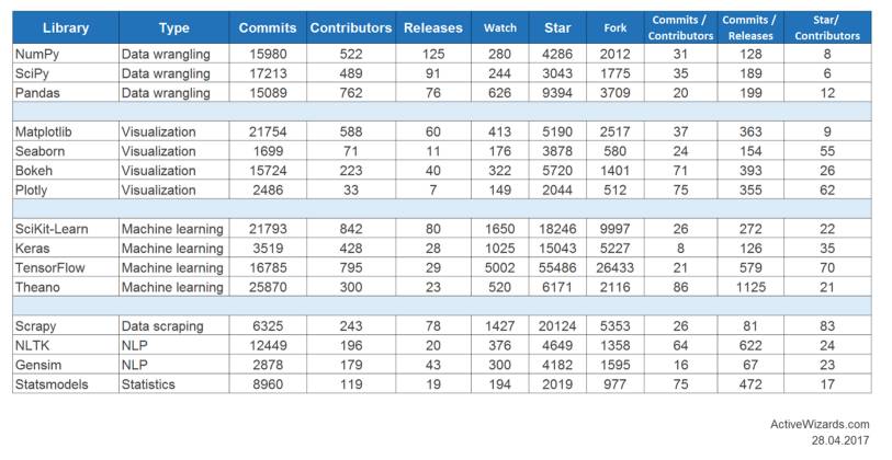 总结:以上这些就是由数据科学家和工程师们公认的值得你一探究竟的Python库。这是每个库在Github上动向的详细数据: