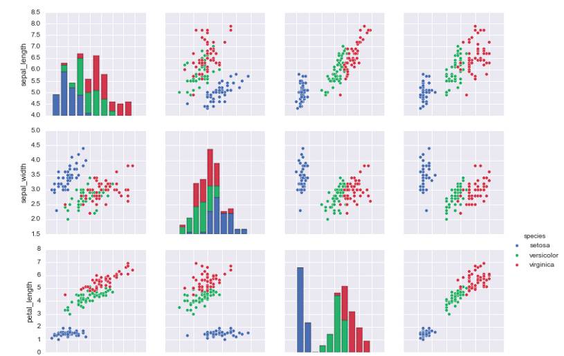 5. Seaborn:Seaborn主要关注统计模型的可视化,包括热分布图(用来总结数据及描绘数据的整体分布)。 Seaborn是基于且高度依赖于Matplotlib的一个python库。使用Seaborn制作的图表展示